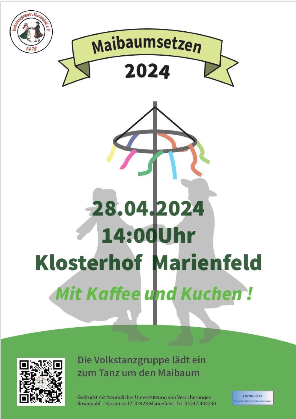 Zum 40. Mal wird in Marienfeld der Maibaum aufgestellt. Organisiert wird das 1. Outdoor-Event des Jahres 2024 von der Volkstanzgruppe Marienfeld.