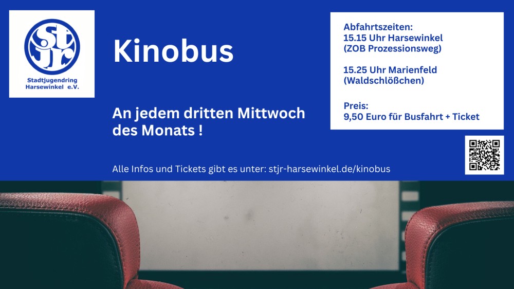 Fragen zum Kinobusprogramm richten Sie bitte an: info@stjr-hsw.de. Der Ticketverkauf endet jeweils am Vorabend der Kinobusfahrt.