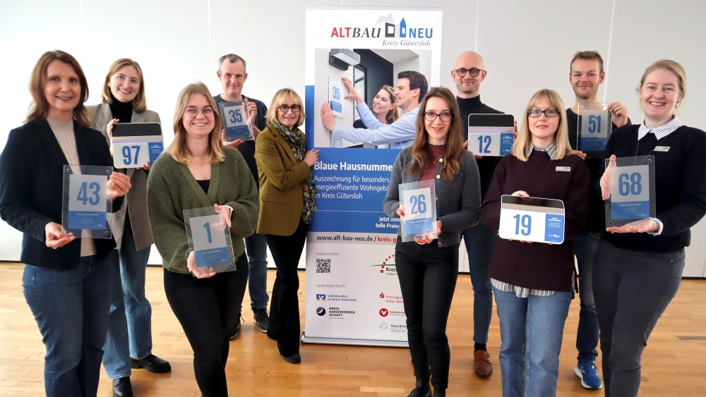 „Mit der Blauen Hausnummer möchten wir nicht nur die Leistungen der Hausbesitzer honorieren, sondern auch gute Beispiele für die Öffentlichkeit sichtbar machen“, erklärt Landrätin Ina Laukötter. „Bei den Vergabekriterien haben wir uns an den Förderprogrammen zum energieeffizienten Bauen und Sanieren der Kreditanstalt für Wiederaufbau (KfW) und des Bundesamtes für Wirtschaft und Ausfuhrkontrolle (BAFA) orientiert“, erläutert Ulla Thering, Projektleiterin beim Kreis Gütersloh. Wer seinen Altbau nach dem 1. Oktober 2009 mindestens auf KfW-Effizienzhaus-Niveau 100 gebracht oder ein Haus zum KfW-Denkmal saniert hat, kann sich bewerben. Gleiches gilt für Hausbesitzer, die drei wirksame Einzelmaßnahmen aus dem Bewerbungsbogen umgesetzt haben – vorausgesetzt zwei der drei Maßnahmen betreffen die Gebäudehülle. Neubauten müssen mindestens den KfW-Standard 40 oder besser erreichen, um eine Auszeichnung zu erhalten. Darunter fallen auch Passivhäuser.