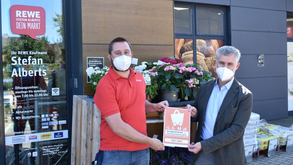 Das bundesweit vom Handelsverband HDE getragene Siegel bescheinigt den beiden REWE-Märkten in Harsewinkel, dass sie in puncto Servicequalität, Produktauswahl und Beratung die Anforderungen von Kunden aller Generationen vorbildlich erfüllen und so den demografischen Wandel aktiv gestalten. Es wird attestiert, dass Stefan Alberts Kunden aller Altersgruppen – seien es Familien, Singles oder Menschen mit Handicap – in seinen Märkten ein komfortables und vor allem möglichst barrierearmes Einkaufen ermöglicht. Das Qualitätszeichen für generationenfreundliches Einkaufen wird seit 2010 vergeben und alle Einzelhandelsunternehmen, die sich zertifizieren lassen, werden von Prüfern des Handelsverbandes vor Ort besucht und entsprechend der insgesamt 63 Qualitätskriterien, von denen 18 auf jeden Fall positiv bewertet werden müssen, geprüft. Die Kriterien beziehen sich unter anderem auf Leistungsangebote, Zugangsmöglichkeiten, Ausstattung der Geschäftsräume oder das Serviceverhalten. Für die Zertifizierung in Ostwestfalen-Lippe ist der Handelsverband OWL zuständig.