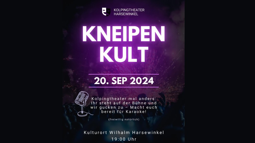 Die Schauspielschar lädt ab 19:00 Uhr zum Karaoke Abend ein. Der Eintritt ist frei und die Mitglieder übernehmen die Bewirtung. Alle Gäste können (natürlich freiwillig) allein oder zu zweit ein Lied singen. Der Text wird dabei auf einer großen Leinwand gezeigt, sodass es sich gerne auch zum lustigen Rudelsingen entwickeln kann…