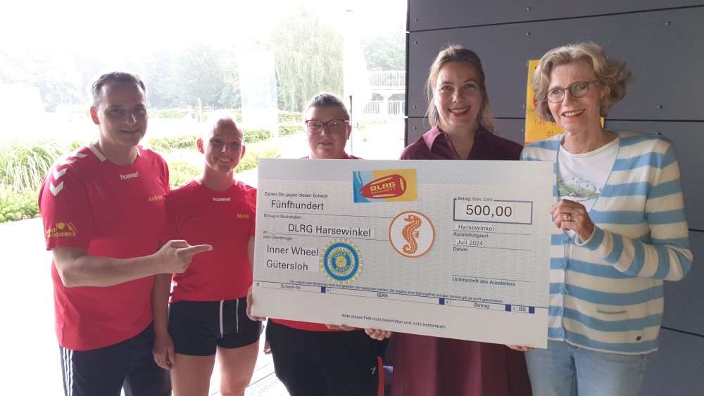 Die Rettungsschwimmer der DLRG Harsewinkel dürfen sich über Unterstützung bei der Schwimmausbildung freuen, denn der Inner Wheel Club Gütersloh überreichte den Ehrenämtlern einen Spendenbetrag in Höhe von 500 €. Mit dem Betrag sollen anfallende Kursgebühren für Kinder aus bedürftigen Familien finanziert werden.