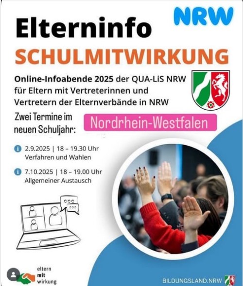 Dabei machen wir immer wieder die Erfahrung, dass viele Eltern gar nicht wissen, wie viele Mitwirkungs- und Entscheidungsmöglichkeiten sie in Schulen tatsächlich haben. Angebote wie z.B. online-Infoveranstaltungen von QUA-LiS NRW geben wertvolle Einblicke und zeigen, wo Eltern mitreden, mitgestalten und Verantwortung übernehmen können: https://www.qua-lis.nrw.de/erwachsenenbildung/elternmitwirkung-nrw.