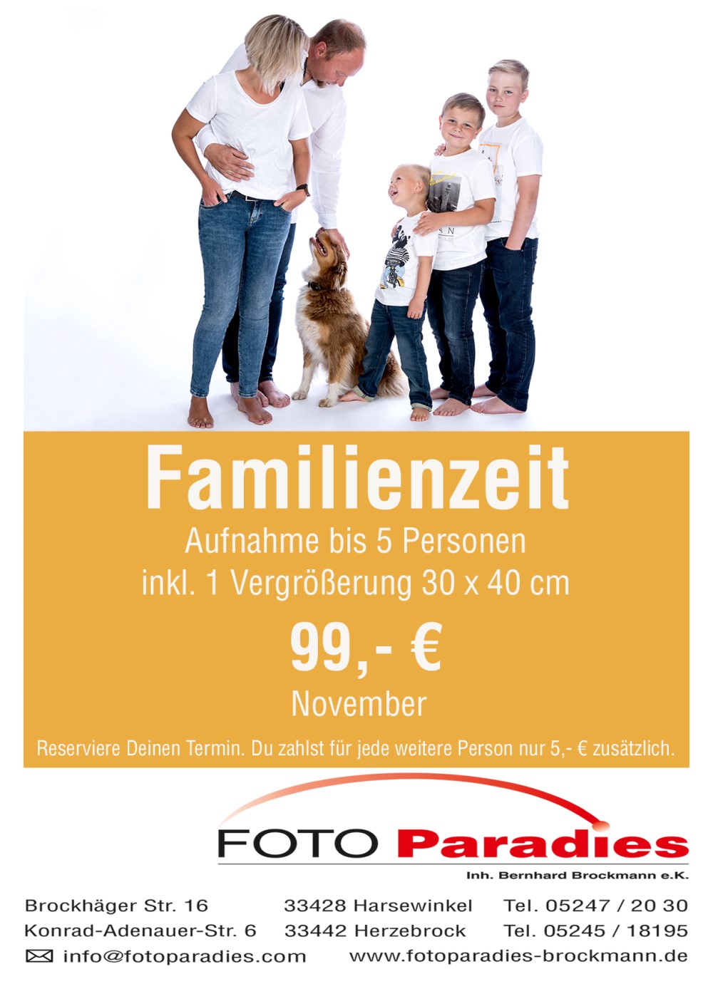 Termine für die Aufnahmen und unserem professionellen Fotostudio können unter der Telefonnummer 05247-2030 gebucht werden. Buche jetzt Deinen Termin im FOTO Paradies und sichere Dir damit das perfekte Geschenk zu Weihnachten. Wir freuen uns bereits auf Deine Familie und Dich!