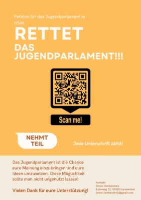 Nachdem sich Mitglieder der Harsewinkeler Rats-Fraktionen von CDU und AfD sowie Vertreter der Stadtverwaltung für die „Aussetzung“ des JuPa ausgesprochen haben, möchten die Mitglieder des Jugendparlaments das JuPa mithilfe der Petition ,,Rettet das Jugendparlament“ erhalten. Jugendliche zwischen 12 und 21 Jahren können sich per Online-Petition oder per Unterschrift in der Schule beteiligen. Simon Hemkendreis begründet die Aktion stellvertretend für das JuPa wie folgt: