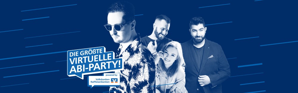 Traurige Aussichten, doch die Volksbanken-Raiffeisenbanken eröffnen eine äußerst positive Perspektive: mit der Unterstützung der größten virtuellen Abiparty Deutschlands. Unter dem Motto „Abi. Party. Zukunft.“ wird das etwas andere Abitur am 31. Juli 2020 mit einer etwas anderen Party als Großereignis gefeiert – im exklusiven Livestream mit Top-Acts der deutschen Comedy- und Musikszene.