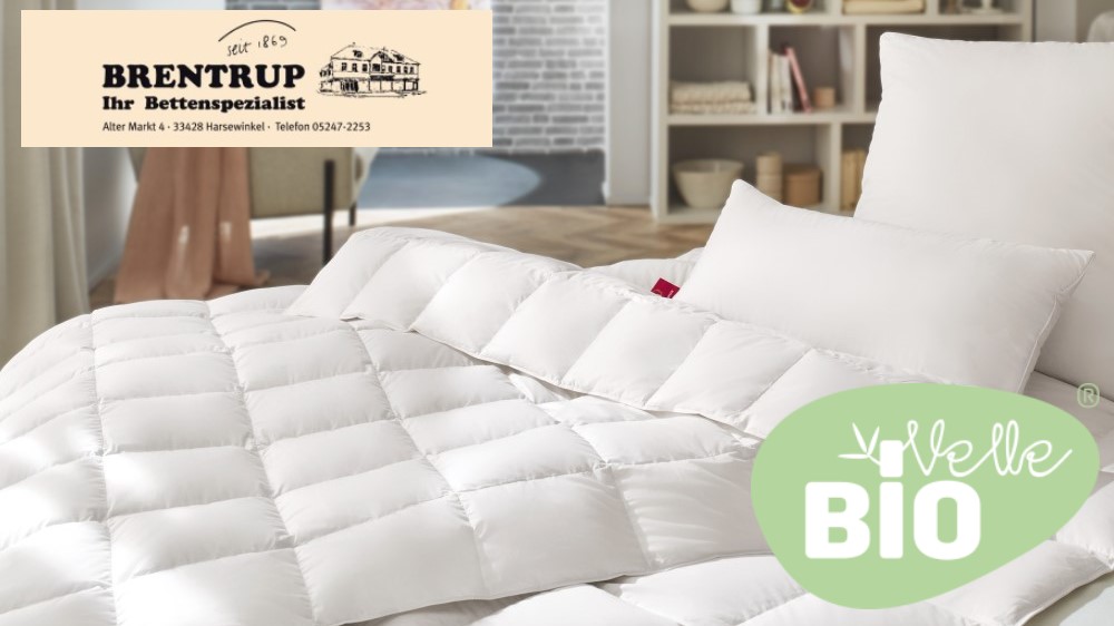 Bettwaren mit BIOVELLE® bieten gehobenen Schlafkomfort. Ihr Bettenspezialist Brentrup hat die Steppbettkombinationen BIOVELLE ® WARM und VIER JAHRESZEITEN inklusive Kissen vorrätig. Weitere Versionen können selbstverständlich umgehend bestellt werden.