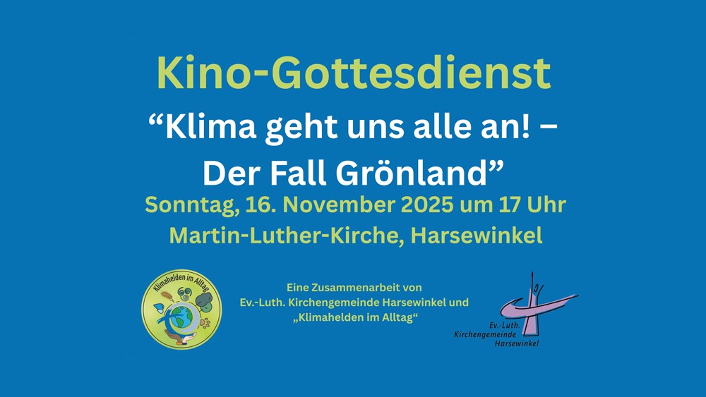 In diesem Film wird der Blick auf die größte Insel der Welt geworfen und warum Grönland so immens wichtig für unser Klima ist. Die wiederholt von US-Präsident Donald Trump ausgesprochenen Besitzansprüche auf das zum Königreich Dänemark gehörende Grönland kann in ökologischer Hinsicht Folgen für uns haben. Die Gebiete nördlich des Polarkreises haben eine Schlüsselfunktion bei unseren Bemühungen, die Erderwärmung einzudämmen. Ein in der Kirche ausgelegter, wissenschaftlich erarbeiteter Klimazeitstrahl zeigt zudem auf, welche Auswirkungen die Erderwärmung bereits in den nächsten Jahren und Jahrzehnten haben wird. Der Kino-Gottesdienst greift damit auch eine aktuelle Thematik auf, da zur Zeit in Belém die Weltklimakonferenz genau zu den Fragen der Erderwärmung tagt.