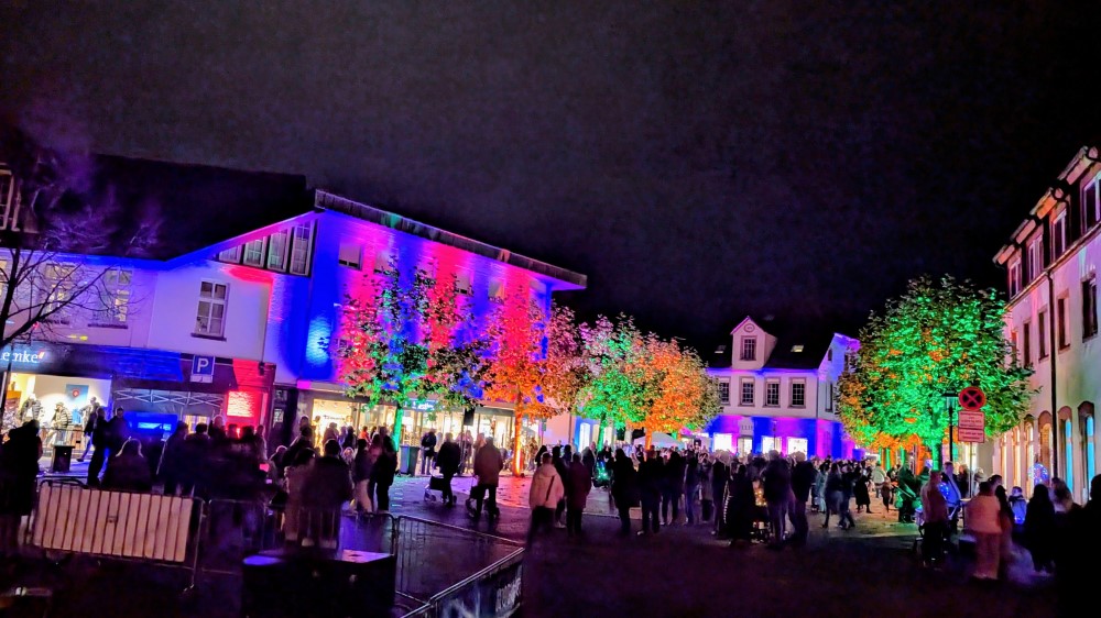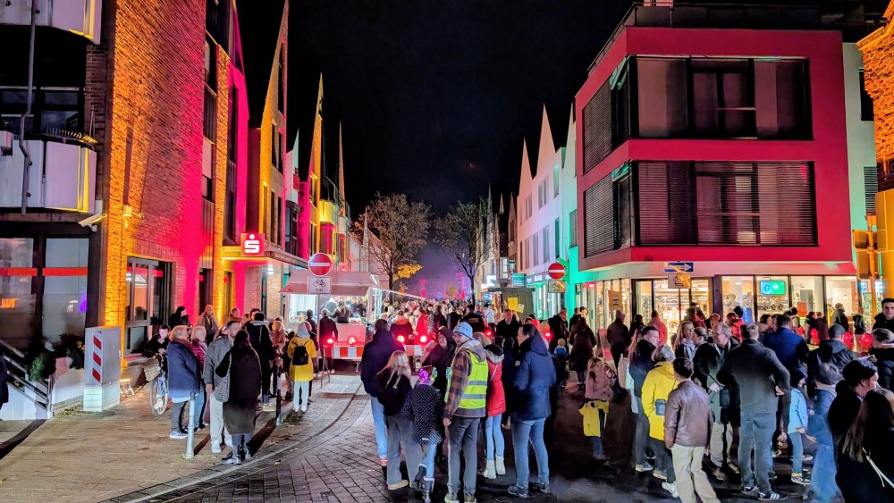 Mit vielen faszinierenden Illuminationen an den Gebäuden, Livemusik an verschiedenen Punkten der Stadt, Candle-Light-Trauungen im Rathaus, Künstlerin Simone Beckmann, die mit ihrem Team kunstvoll illuminiert durch die Innenstadt düste, den Weihnachtsmarkt-Engelchen, vielen Attraktionen und Aktionen in und vor zahlreichen Geschäften, Stadtbücherei, Wilhalm und St. Lucia Kirche wurde für Jung und Alt auch 2025 so allerhand geboten. Mit Bratwurst, Waffeln, einem Glühweinstand der Werbegemeinschaft sowie vielen weiteren Angeboten war auch für das leibliche Wohl gesorgt und für jeden etwas dabei.