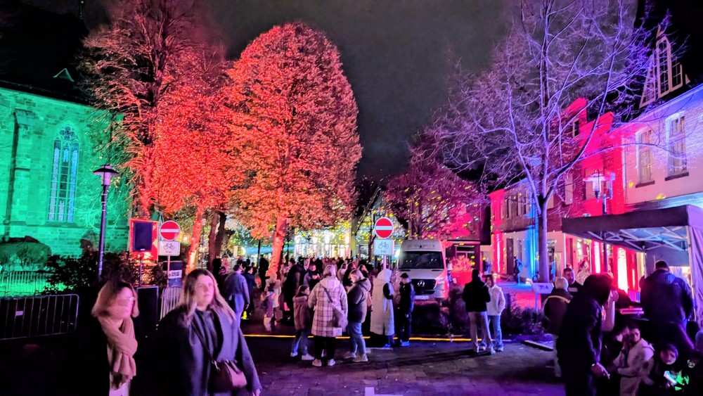 Egal ob Gesangsgruppe M-Tune, Live-Backen bei euronics Bücker, Iga-Optic-Kollektion inklusive Waffelverkauf für „PRO RETINA e.V.“ bei Böckstiegel, HVMC-Lasershow am Alten Markt, historische illuminierte Fotomotive der Stadt, andächtige Lichterwelt in der Kirche oder Cocktails & Parookaville-Feeling bei Andrees. Jeder hatte so seinen Favoriten und da ein Bild viel mehr aussagt als eintausend Worte, hat das Spöggsken hier eine kleine Schnappschuss-Auswahl zusammengestellt, die noch einmal Erinnerungen an einen schönen LichterAbend 2025 zurückbringt und gleichzeitig Vorfreude aufs nächste Jahr wachsen lässt.