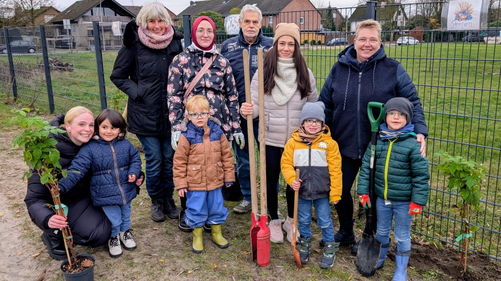 Zahlreiche Kita-Kinder, Eltern und Erzieherinnen in 18 Kitas in Harsewinkel, Marienfeld und Greffen, buddeln derzeit, was das Zeug hält, denn aus insgesamt mehr als 100 Beerensträuchern sollen Naschgärten mit fünf verschiedene heimische Beerenarten entstehen, damit die Kids im nächsten Jahr naschen und beiläufig einiges über Pflanzen und Früchte lernen können.