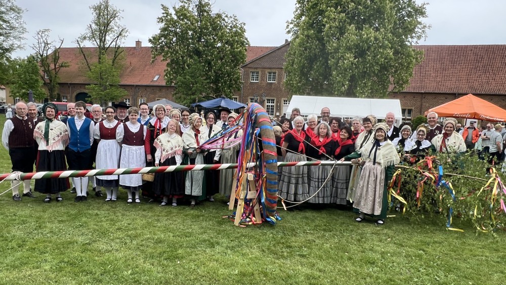 Die Volkstanzgruppe Marienfeld lädt am Samstag, 26. April, zum traditionellen Maibaumsetzen auf den Klosterhof Marienfeld ein. Beginn der Veranstaltung ist um 14 Uhr. Im Mittelpunkt des Nachmittags steht das gemeinsame Aufstellen des Maibaums, der von den anwesenden Volkstänzerinnen und -tänzern festlich geschmückt wird. Begleitet wird das Brauchtum von einem abwechslungsreichen Tanzprogramm. Neben der ausrichtenden Volkstanzgruppe Marienfeld wirken in diesem Jahr mehrere Gastgruppen, wie die Volkstanzgruppe Röcke aus dem Schaumburger Land mit ihren besonderen Trachten, die Tanzgruppe aus Greffen, die Line Dancer aus Marienfeld sowie Tänzerinnen und Tänzer aus dem Verbund „Der Kreis tanzt“ Gütersloh. Gemeinsam präsentieren die Mitwirkenden unter anderem den traditionellen Bändertanz sowie weitere Volks- und Mitmachtänze.