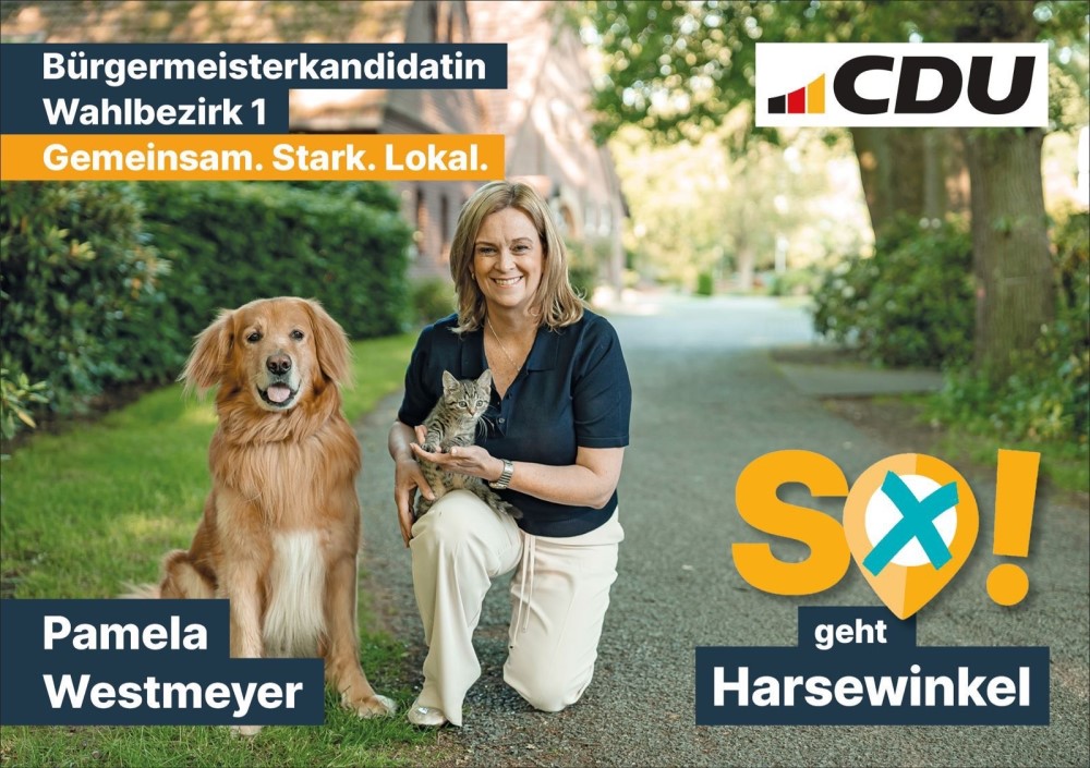 Pamela Westmeyer – 50 – Rechtsanwältin – seit 2014 Ratsmitglied, 1. stellvertretende Bürgermeisterin, Vorsitzende des Schul,-Kultur-und Sportausschuss, stellvertretende Vorsitzende der Ortsunion Marienfeld, stellvertretende Vorsitzende im CDU Kreisvorstand.