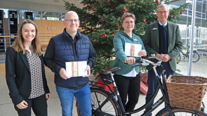 Die Gewinner der Gutscheine sind: Malte Viezens (Abteilung Bevölkerungsschutz), Veronika Hilthorst (Abteilung Tiefbau), Anastasia Schürmann (Abteilung Arbeit und Steuerung) und Stefan Reinsch (Abteilung Geoinformation, Kataster und Vermessung).