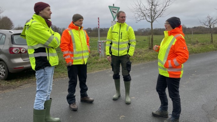 „Die Gewässer wachsen nicht mit“, thematisiert Felix Wittenbrink die zunehmenden Wasser-Abflussmengen. Zusätzliche Baugebiete und Nachverdichtungen führten dazu, dass bei Regen immer mehr Wasser schnell in die so genannten Vorfluter eingeleitet werden. Das ist es aber in diesem Fall nicht. Der von Anwohnenden gemeldete hohe Wasserstand ist bereits wieder gesunken. Die Fachleute erklären sich das so: Oberhalb haben Mäharbeiten stattgefunden, infolgedessen hat es einen verstärkten Abfluss aus den gesättigten Flächen gegeben. Das hat zu der gefühlten ‚Welle‘ geführt. „Überflutung ist hier temporär gewollt“, stellt Wittenbrink fest. Also alles kein Grund zur Sorge. Weiter geht es…