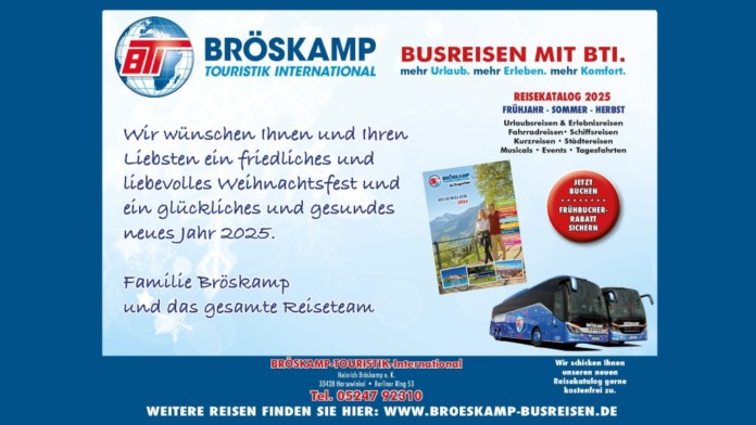 Die Stadtverwaltung Harsewinkel weist darauf hin, dass die Öffnungszeiten des Harsewinkeler Hallenbads während der Weihnachtsferien von Montag, den 23. Dezember 2024 bis Sonntag, den 5. Januar 2025 angepasst werden.