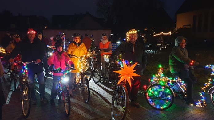 Am 3. Advent um 17 Uhr war es wieder so weit. Rund 70 kleine und große Radler trafen sich neben der Martin-Luther-Kirche mit bunt beleuchteten Fahrrädern, Anhängern und allerhand leuchtenden Accessoires zur zweiten Advent-Fahrradlichterparade in Harsewinkel.