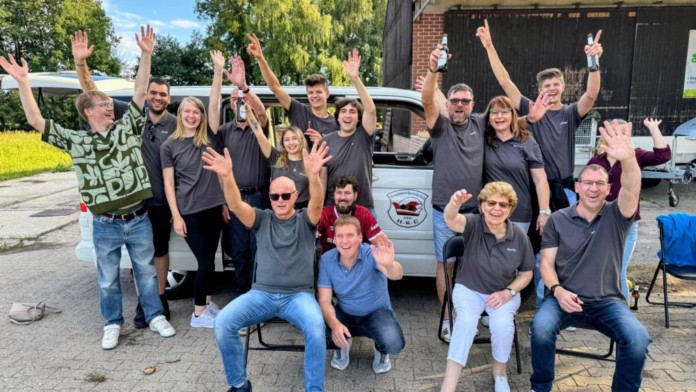 Der HKC bereitete sich beim vereinsinternen Sommerfest 2025 mit Bosseln, Grillen und neuen HKC-Shirts auf die Karnvalssession 2025/2026 vor (Bild: HKC).