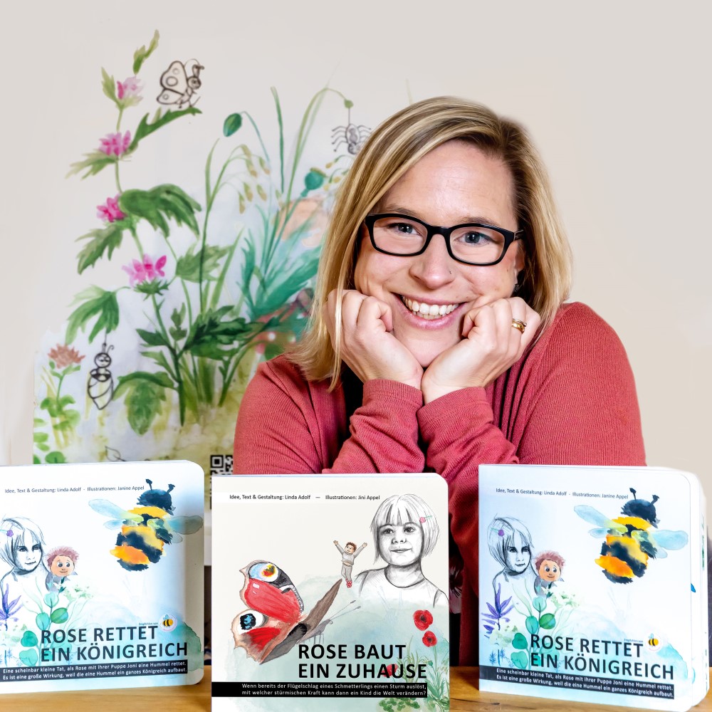 Die Geschichte erzählt, wie Rose und ihre Puppe Joni ihre Angst vor der brummenden Hummel überwinden und dem flauschigen Tierchen helfen. Es gilt als erzählendes Sachbuch und verbindet eine Geschichte mit Naturwissen. Im zweiten Band gestaltet die Figur Rose mit ihrer Puppe Joni kurzerhand einen kompletten Garten um, damit Schmetterlinge bei ihnen einziehen können.