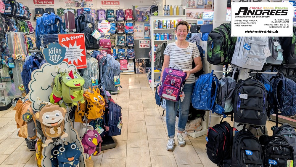 In unserer stark erweiterten Abteilung für Schulranzen, Rucksäcke und Taschen finden Sie bestimmt auch die passende Schultasche für das neue Schuljahr. Auf kompetente Beratung inklusive Anprobe können Sie sich selbstverständlich ebenfalls verlassen, denn Andrees hat unlängst das offizielle AGR-Siegel erhalten und ist zertifiziertes Fachgeschäft AGR – Aktion Gesunder Rücken. Die Gesundheit und der Rücken Ihres Kindes liegen uns sehr am Herzen!