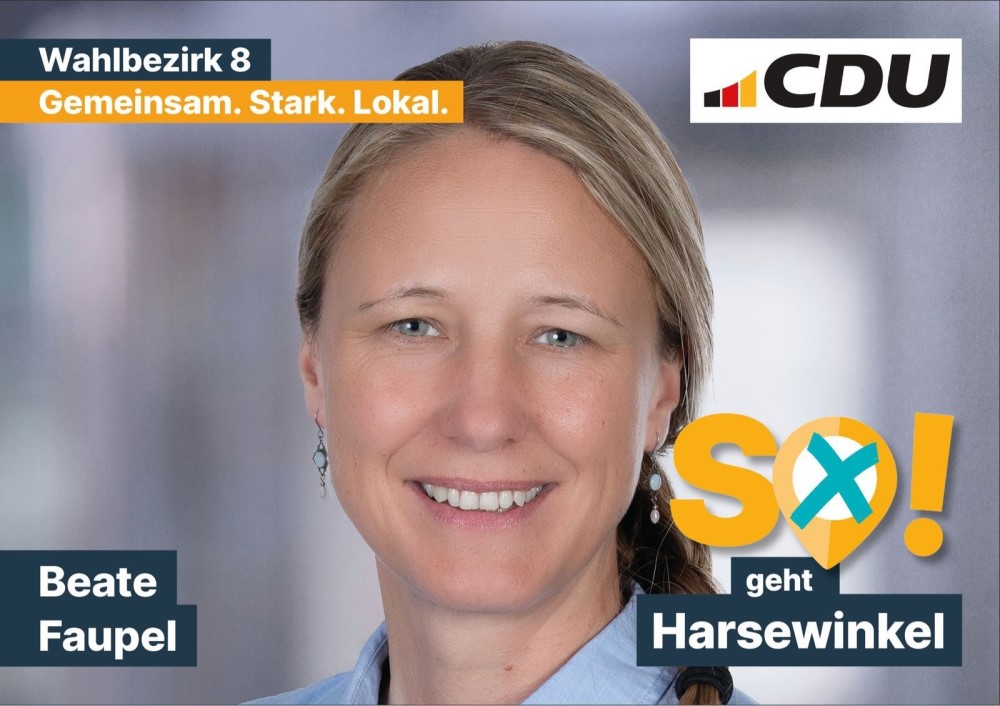 Beate Faupel – Studienrätin – seit 2024 sachkundige Bürgerin im Betriebsausschuss und Vorsitzende der Harsewinkler Frauen Union.