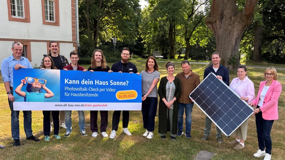Photovoltaik boomt – nicht zuletzt, weil immer mehr Hausbesitzer nach mehr Unabhängigkeit vom Energieversorger streben. Vor diesem Hintergrund bietet die Initiative ALTBAUNEU des Kreises Gütersloh gemeinsam mit sieben Kommunen zum zweiten Mail eine PV-Videoberatungsaktion an. Ab sofort bis zum 24. September 2025 nehmen die Klimaschutzstellen der Kommunen Borgholzhausen, Gütersloh, Halle (Westf.), Herzebrock-Clarholz, Steinhagen, Versmold und Werther (Westf.) Anmeldungen von Hausbesitzern entgegen.