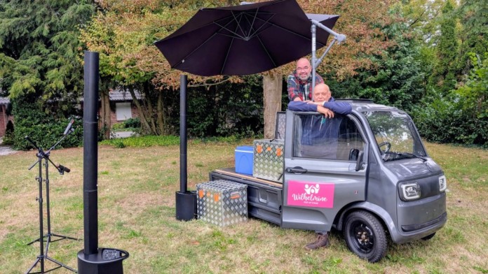 „Frankie und Wern“ erfreuen die Marktbesucher den für sie typischen Klängen und dabei zeigen auch gleich was so in Wilhelmine steckt. Das E-Mobil vom Hersteller Urban-Hopper verfügt über eine erweiterbare Ladefläche von 1,50 mal 1,20 Metern und ist mit Bühnenbodenplatten, Funkmikrofonen, Stativen, Sound- und Lichtanlage, Powerstation, angeschweißtem Regen- bzw. Sonnenschirm sowie polyvalent nutzbaren Kisten ausgestattet. Wilhelmine funktioniert ohne externe Stromquelle und bietet alles, was für flexible Einsätze und schnelle Ortswechsel erforderlich ist. Das neue Kulturmobil fährt maximal 40 km/h und die Reichweite beträgt maximal 70 Kilometer.