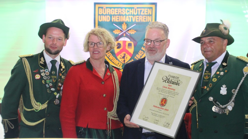 Der Heimatorden ging in diesem Jahr an Chris Brentrup. Er ist 1971 in Harsewinkel geboren seit über 30 Jahren ein langjähriges Mitglied in unserem Verein. Das bemerkenswerte Organisationstalent organisiert bereits seit 1989 ehrenamtlich viele wichtige Veranstaltungen in unserer Stadt. Hierzu gehören beispielsweise das Weinfest, der Weihnachtsmarkt oder auch das Stadtfest – Die Ferienspiele in den Sommerferien für unsere Kleinsten und auch die SunSwing Poolparty für die Erwachsenen. Darüber hinaus ist er als Vorsitzender des Stadtjugendringes sowie der Werbegemeinschaft tätig. Mit seinem unermüdlichen Engagement macht er sich für die kulturellen Interessen von Kindern, Jugendlichen und auch den junggebliebenen Erwachsenen in unserer Stadt stark – Vielen Dank!