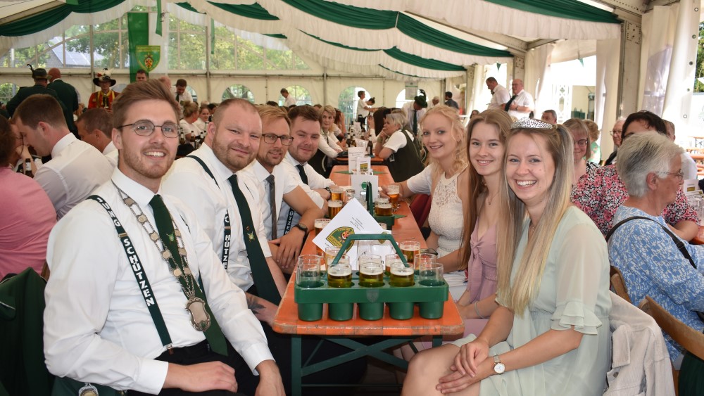 Der erste Tag des Schützenfestes startete in diesem Jahr wieder mit einem ökumenischen Wortgottesdienst in der Pauluskirche. Darauffolgend begann der traditionelle Festkommers im Festzelt hinter dem Heimathaus, bei dem zahlreiche Ehrungen und Ordensverleihungen stattgefunden haben. Besonders freuen konnten sich Franz Ahlke, Franz-Josef Alke, Erika Amsbeck, Antonius Berheide, Monika Bockholt, Angelika Hanhart, Willi Hollensett, Klaus Kanne, Hildegard Kleine, Friedhelm Schmitz, Lothar Schörnick, Mechtild Schörnick und Friedhelm Schulze über die Ehrung zu 50 Jahren Mitgliedschaft sowie Horst Elbeshausen und Werner Ellebracht über die Ehrung zu 60 Jahren Mitgliedschaft. Besondere Anerkennung verdienen darüber hinaus auch Erich Berbalk, Reinhard Ellebracht, Dietmar Hackfort, August Lanwehr, Willi Mense, Fritz Mensing, Bernhard Ströer sowie Josef Zurbrüggen mit einer Auszeichnung zu 65 Jahren Mitgliedschaft. Wir gratulieren allen Jubilaren herzlich und bedanken uns für ihre jahrelange Treue.