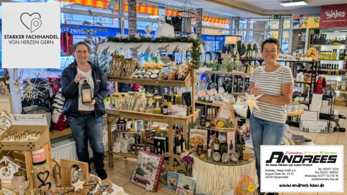 Andrees hat sich selbstverständlich auch für den diesjährigen LichterAbend wieder etwas ganz Besonderes einfallen lassen. Die Damenkompanie Greffen bietet in beleuchtetem Party-Ambiente Cocktails und zahlreiche Leckereien an und neben der großen Weihnachtsausstellung präsentieren Helga Krieft und ihr Team viele angesagte Deko- und Geschenkartikel sowie Spielzeug- & Gesellschaftsspielneuheiten sowie Kostproben aus dem umfangreichen Feinkostsortiment von Wajos.