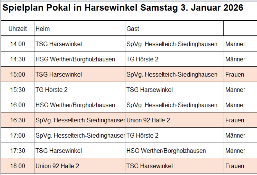 Es ist Tradition das Pokalturnier der Handballer – Damen und Herren – im Handballkreis Gütersloh findet am ersten Wochenende des neuen Jahres statt. Dieses Mal am Samstag 3. und Sonntag 4. Januar 2026.