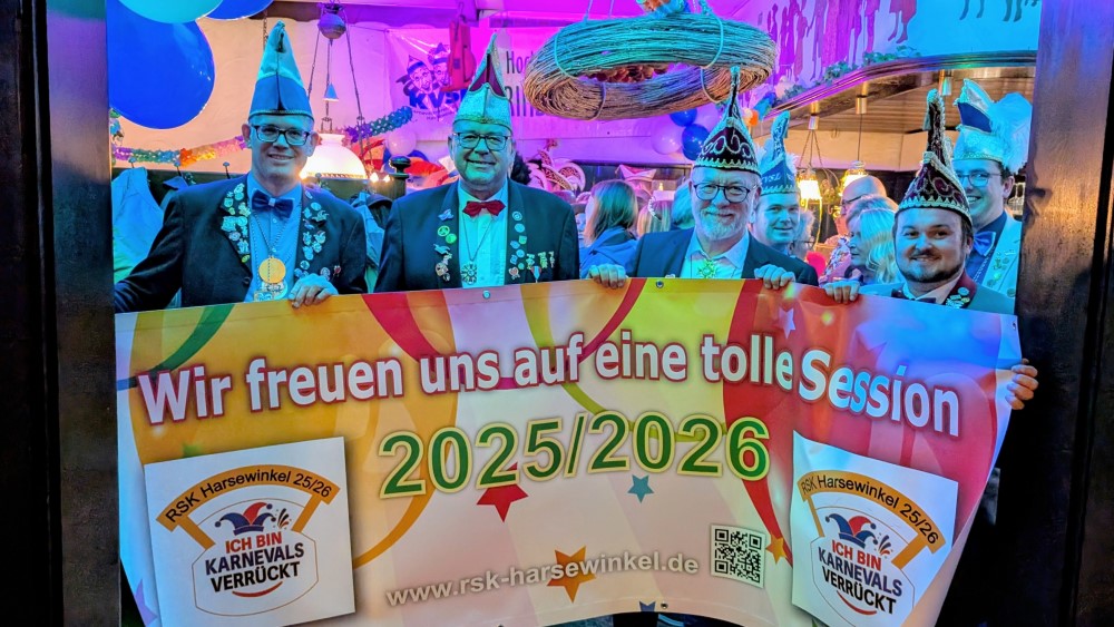 Im Rahmen der Sessionseröffnung am 11.11. im Kulturort Wilhalm lüftete der „Dachverband“ des Harsewinkeler Karnevals das Motto, welches auch in diesem Jahr wieder auf sämtlichen Karnevalsveranstaltungen in Form von Sammel-Pin erworben werden kann. Christian Fechtelkord hebt hervor, dass der Verkauf der Pins zur Gegenfinanzierung der Ausgaben für den Rosensonntagsumzug beitragen soll und erwünscht sich, dass möglichst viele Jecken zugreifen und so das RSK unterstützen.