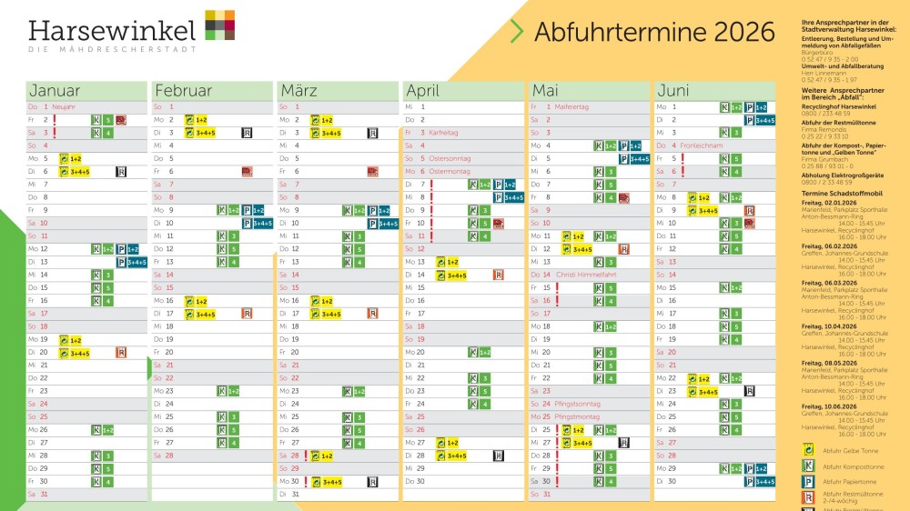 Die Leerung der Gelben Tonnen wird vorgezogen und findet in den Bezirken 1+2 bereits am Samstag, den 28. März statt. In den anderen Bezirken 3+4+5 werden die Tonnen am Montag, den 30. März geleert. An diesem Tag findet auch die zwei- und vierwöchige Restmülltonnenleerung statt.