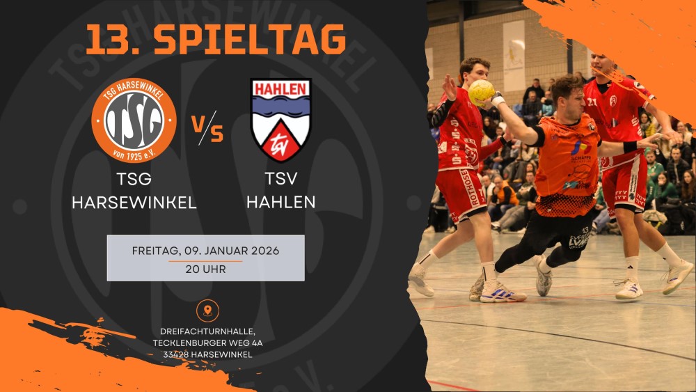 TSG Handball: 1. Herren empfangen TSV Hahlen in der Dreifachturnhalle Harsewinkel!