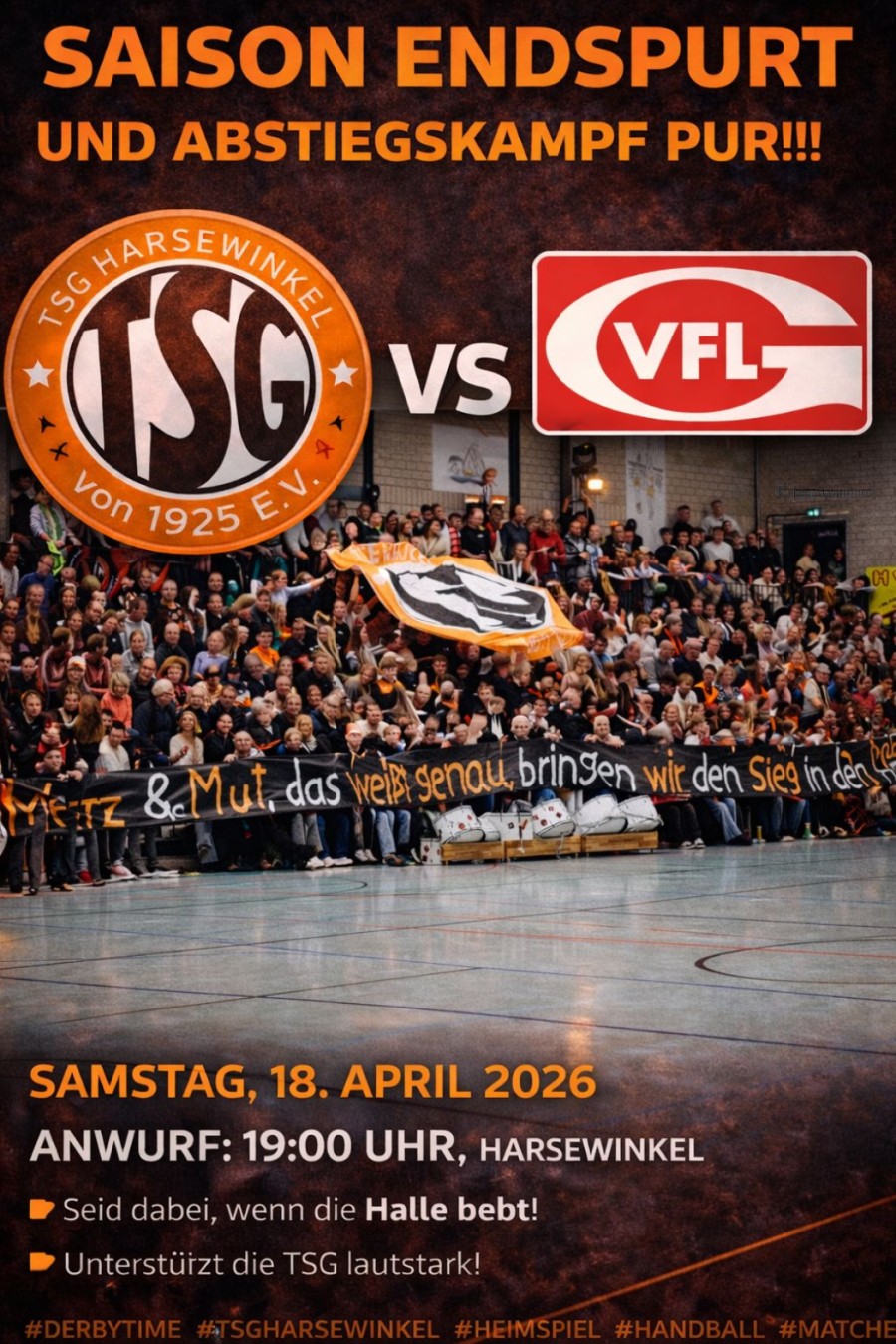 TSG Handball Spieltagsvorschau: Samstag Abstiegskampf pur gegen VFL Gladbeck im Hasenbau!