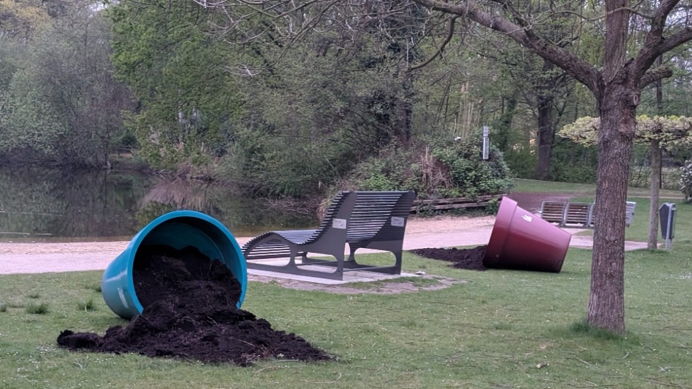 In der Nacht zu Freitag (23. auf 24. April 2026) kam es dort zu einer mutwilligen Sachbeschädigung: Die rund 25 Blumenkübel wurden allesamt umgestoßen und teilweise beschädigt. Die Höhe des entstandenen Schadens kann derzeit noch nicht beziffert werden.