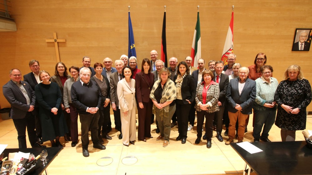 Um die Lebensleistung der politisch Aktiven zu würdigen, nutzte Laukötter in ihrer Rede ein Bild: Wie sich ein Kreistagsmitglied auf dem Bürgersteig mit einem Neuzugezogenen unterhält. Das Kreistagsmitglied interviewt den Neu-Nachbarn zu seinem Alltag. Dabei stellt sich unter anderem heraus, dass der Neue in der Nachbarschaft die gute Anbindung an das Ems-Berufskolleg schätzt, das sein Sohn besucht – per ÖPNV über die Kreisstraße. Schulen in Kreisträgerschaft, Kreisstraßen und der Busverkehr: Das kurze Gespräch auf dem Bürgersteig, so Laukötter, spiegele die Bandbreite der Themen wider, mit denen sich die im Saal versammelten ehemaligen Kreistagsmitglieder befasst haben. „Die Geschichte zeigt, wie unmittelbar Ihr Engagement das Leben der Bürgerinnen und Bürger betrifft. Denn weder in Düsseldorf, Berlin oder Brüssel werden Demokratie und politische Entscheidungen so unmittelbar spürbar wie hier: lokal, vor Ort, im Kreis.“