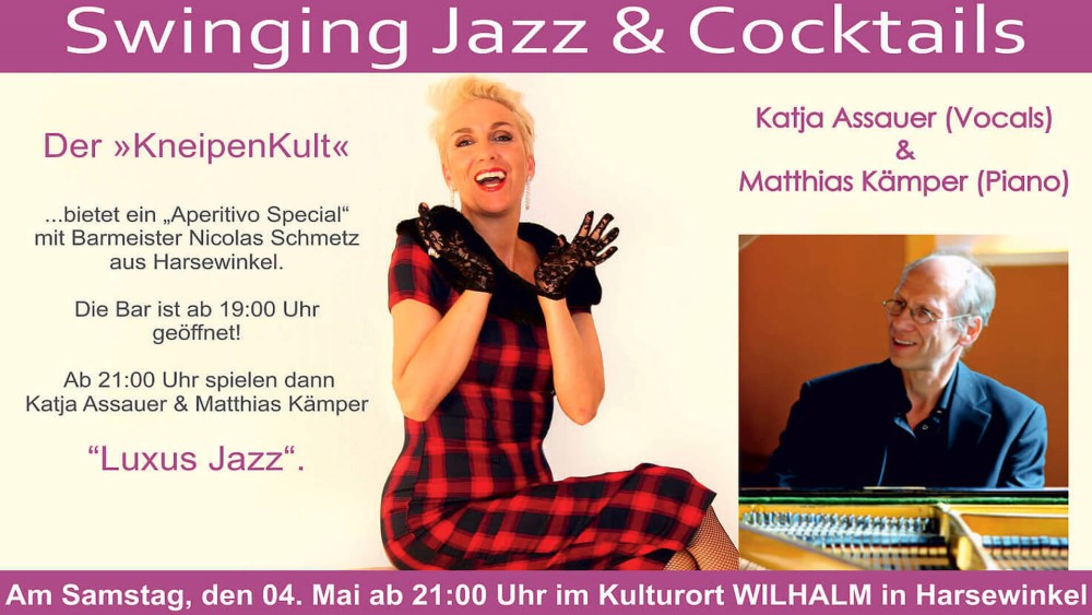 Im Gastraum gibt es hierzu Livemusik mit Katja Assauer (Gesang) und Matthias Kämper (Piano). Ab 21:00 Uhr liefert das „Luxus Jazz“ Duo feinsten Ohrenschmaus. Der Eintritt ist frei.
