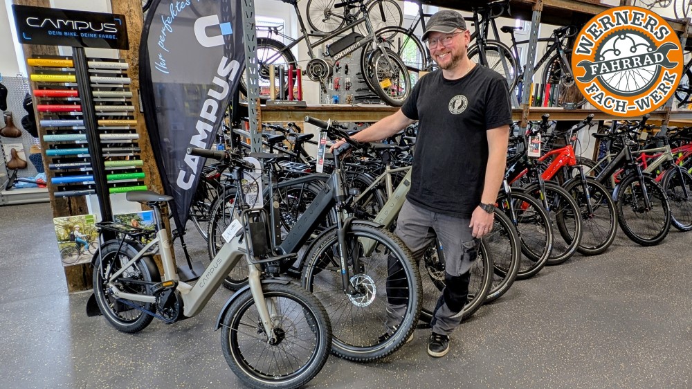 E-Bikes baut man bei CAMPUS schon seit 20 Jahren und Fahrräder sogar noch viel länger. Campus Fahrräder stehen kompromisslose Qualität – handgefertigt in Deutschland. Als Top-Markenhersteller setzt man auf die Zusammenarbeit mit Top-Fachhändlern und Werners Fahrrad Fach-Werk in Marienfeld verhilft Ihnen gerne mit kompetenter Beratung und erstklassigem Service schnell zum perfekten CAMPUS-Wunschrad.