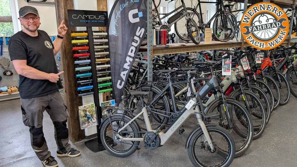 E-Bikes baut man bei CAMPUS schon seit 20 Jahren und Fahrräder sogar noch viel länger. Campus Fahrräder stehen kompromisslose Qualität – handgefertigt in Deutschland. Als Top-Markenhersteller setzt man auf die Zusammenarbeit mit Top-Fachhändlern und Werners Fahrrad Fach-Werk in Marienfeld verhilft Ihnen gerne mit kompetenter Beratung und erstklassigem Service schnell zum perfekten CAMPUS-Wunschrad.