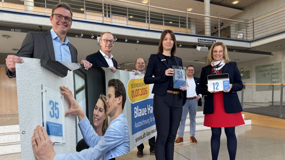 Energetische Maßnahmen am Haus umsetzen oder einen klimafreundlichen Neubau errichten und dafür eine Auszeichnung sowie einen Geldpreis erhalten? Das geht. Der Wettbewerb ‚Blaue Hausnummer‘, der 2026 in Kooperation mit der Initiative ALTBAUNEU des Kreises Gütersloh in acht Städten und Gemeinden angeboten wird, macht es möglich. Bis zum 1. Juli können sich Hausbesitzende und Eigentümergemeinschaften in Harsewinkel, Rheda-Wiedenbrück, Rietberg, Schloß Holte-Stukenbrock, Steinhagen, Verl, Versmold und Werther (Westf.) beim örtlichen Klimaschutzmanagement im Rathaus bewerben.