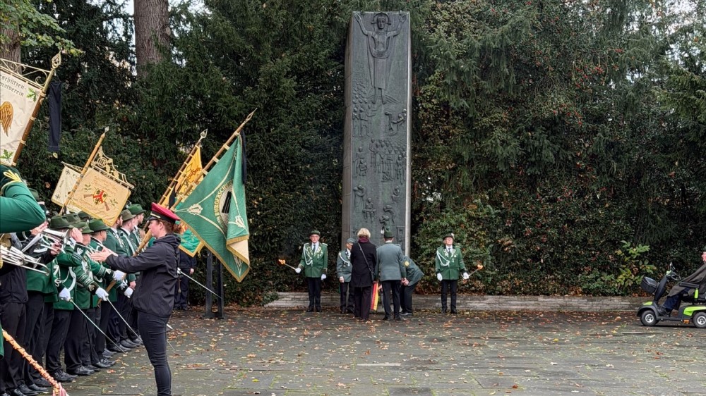 Viele uniformierte Schützen und fast alle Standarten des BSV fanden am 15. November der Weg in die St. Lucia Kirche zum Gottesdienst anlässlich des Volkstrauertags. In einer sehr bewegenden Predigt ging Dechant Josef Backhaus auf die Folgen ein, die die aktuelle Propaganda im Leben der Menschen anrichtet.